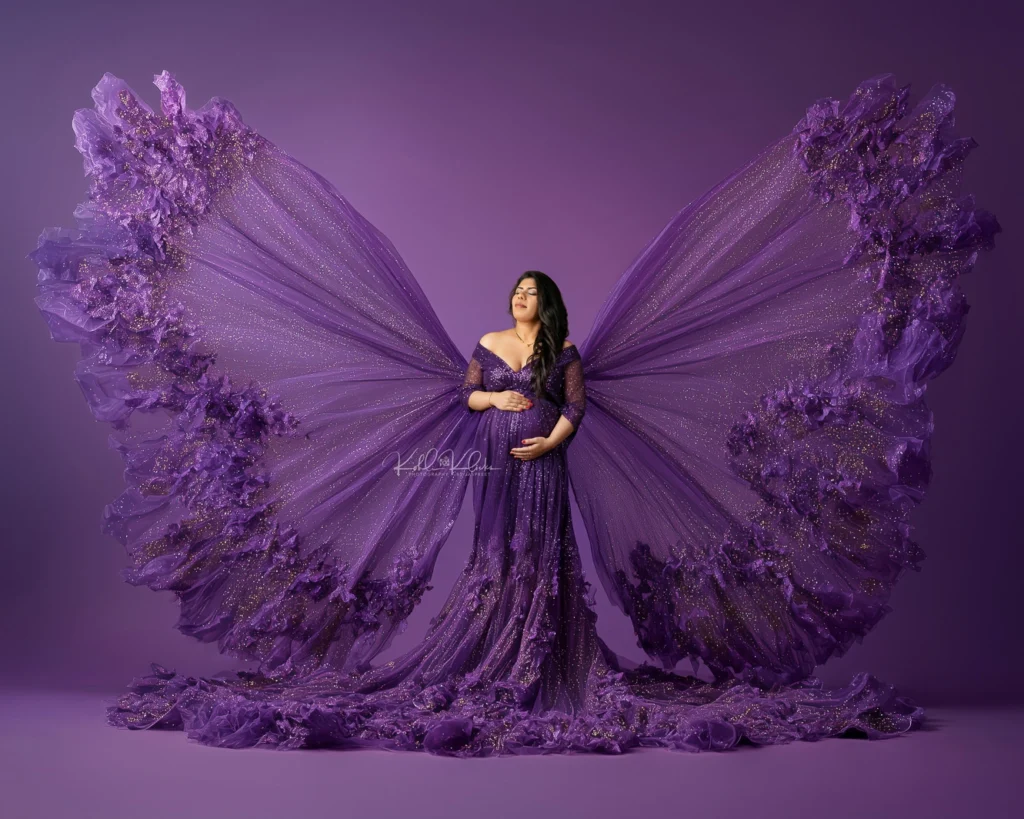 These creative images include artistic elements such as butterflies and dreamy effects that add a unique and enchanting touch to your maternity photos.