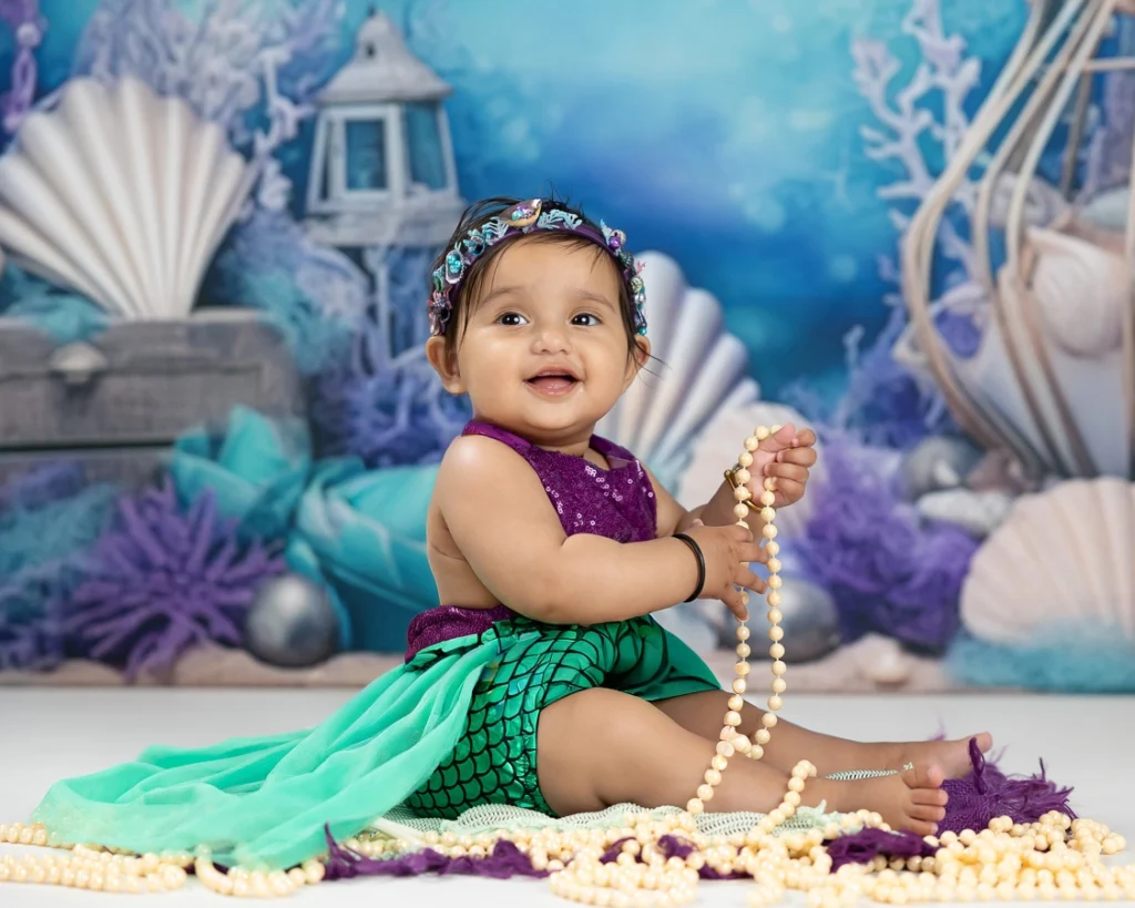 The ideal time for a sitter session is between 6 to 9 months, when babies are sitting up unassisted but not yet fully mobile. This stage offers the perfect mix of expressions, playfulness, and stillness for great photographs.
